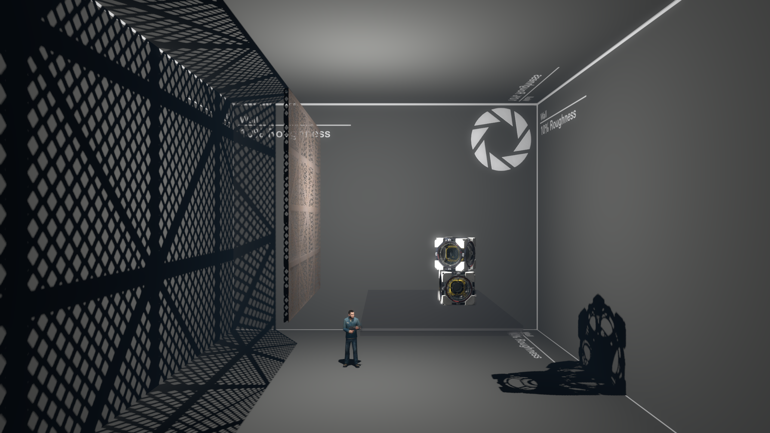 Middle: Specular lighting enabled. Notice a white circle appearing on the wall, as well as reflection on the grate.