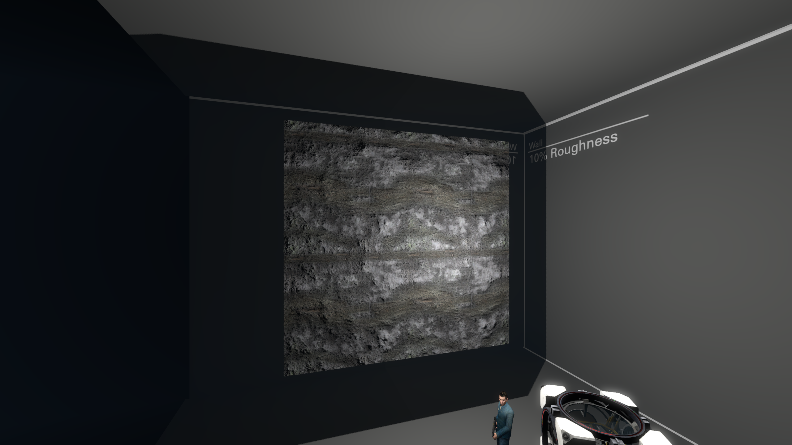 The addition of specular lighting also make metallic PBR materials look much more correct. Previously, without another specular-enabled source like outdoors CSM, metallic materials would simply appear black. This is because metals really only reflect specular lighting, and have little to no diffuse lighting.